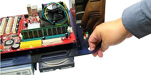 Power LED、アクセスLED、電源スイッチ、リセットスイッチを搭載。バラックケースであっても通常のパソコンケースに比較し遜色のない機能を実現します。