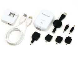 ・本体 ・充電用USBケーブル(白) ・ACアダプタ ・給電用巻き取り式ケーブル(黒) ・携帯電話給電コネクタ3種(黒) ・iPod給電コネクタ(黒) ・PSP給電コネクタ(黒) ・DS Lite給電コネクタ(黒) ・マニュアル |