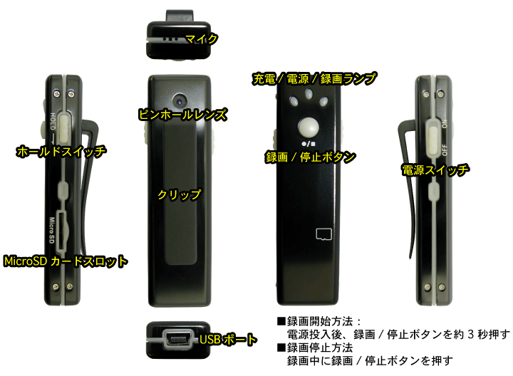 インタビューレコーダー「DVR-SP」の最大の魅力は73 x 20 x 11mm と、100円ライターよりも小さな超小型ボディに搭載されたピンホールレンズ!