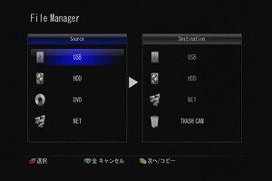 DC-MC35UL4本体操作によるコンテンツのコピー等、ファイル管理が可能です。USB-HOSTに接続したデジタルカメラの画像をコピーしたり、視聴を終えた動画ファイルの削除なども画面上で簡単に行えます。