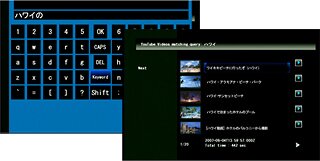 パソコンを使用せずにインターネットのコンテンツ共有サービス(Youtube、Picasaなど)の検索および視聴が可能。検索方法はテレビ画面上のソフトウェアキーボードによる英数文字リモコン入力の他、パソコンによる日本語キーワード登録にも対応。日本語YouTubeコンテンツも大画面テレビでお楽しみいただけます。