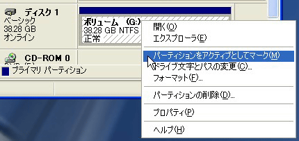 14. MOVIE COWBOYシリーズでお使いの場合、「正常」と書かれた部分を右クリックし、「パーティションをアクティブとしてマーク(M)」を選択することを推奨します。